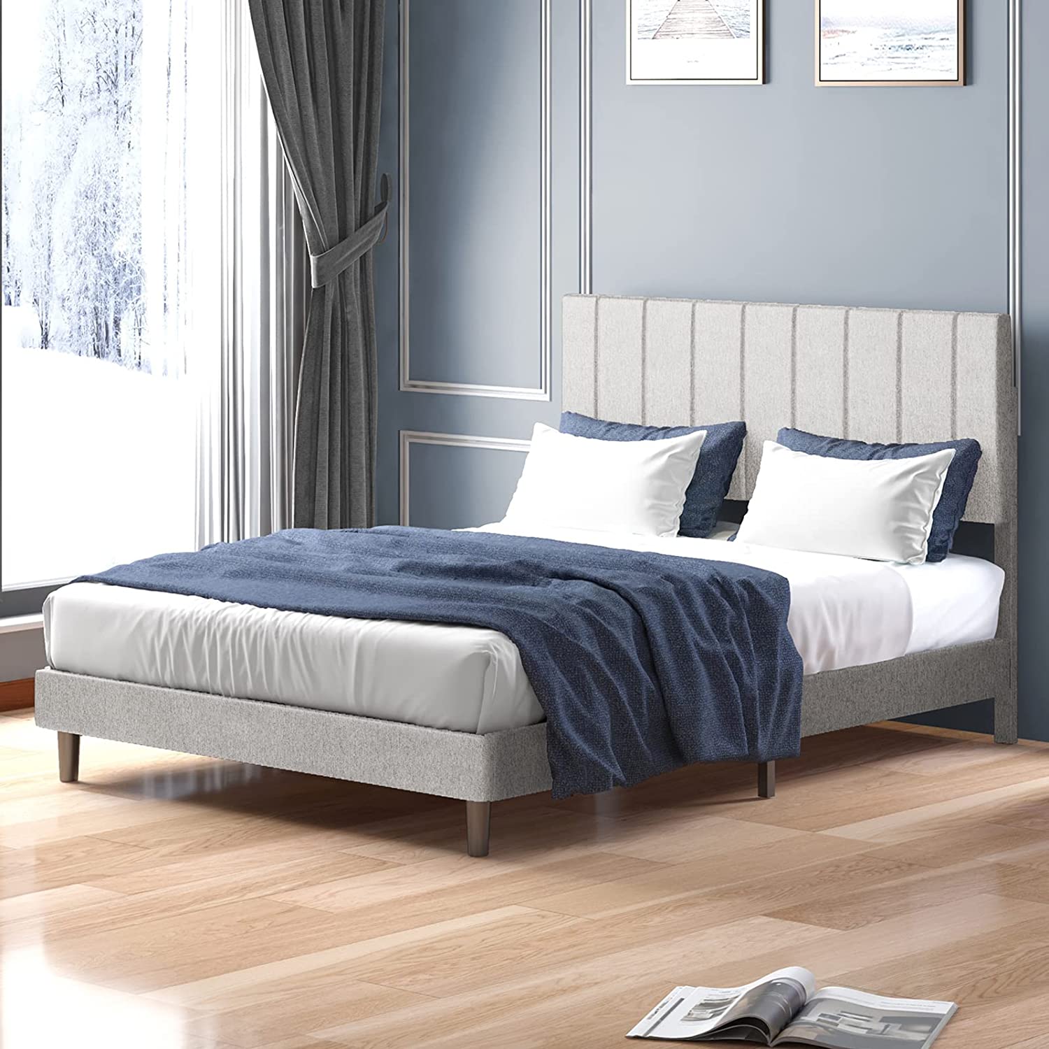 Mjkone Bed Frame Full Size Beds Platform With Ajustable Headboard Bed Frame Easy Assemble Solid Wood Slats Adjustable Headboard Height No Box Spring Needed Full Light Grey Walmart Com